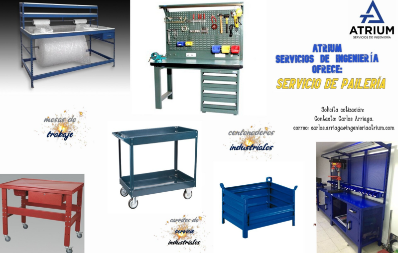 En nuestra unidad de pailería ofertamos una amplia variedad de productos como charolas industriales de acero al carbón, acero inoxidable, mesas de acero ,mesas de PTR, mesas de perfil de aluminio, carros de almacenamiento/ carga de material, estantes, placas de acero inoxidable, contenedores, guardas, tolvas de almacenamiento, racks tanto de acero al carbón como de acero inoxidable, entre otros productos relacionados.